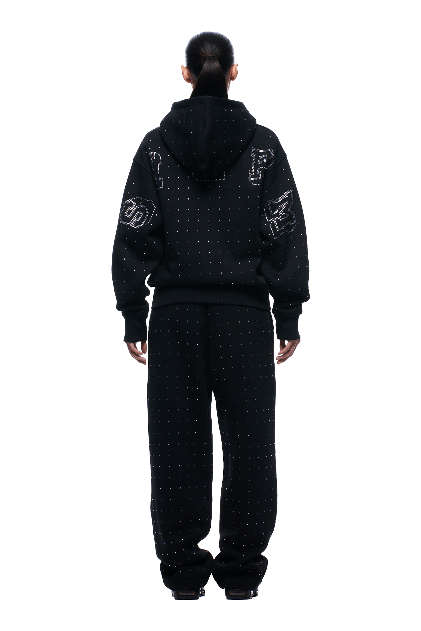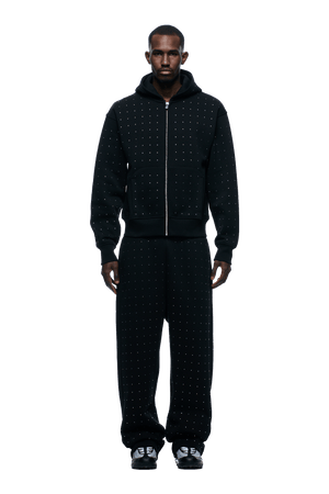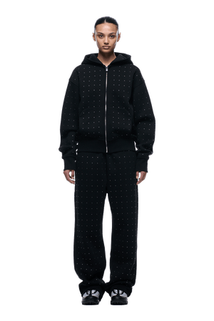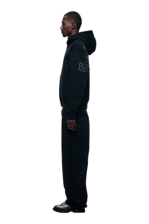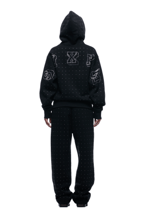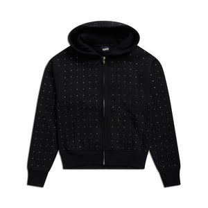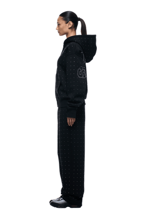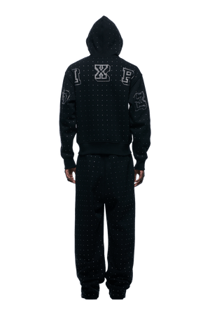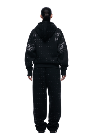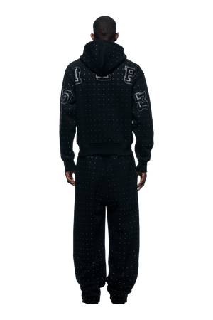 RHINESTONE LETTER ZIP HOODIE BLACK