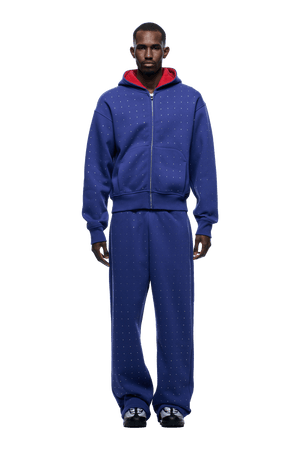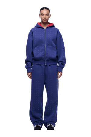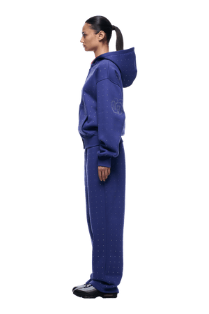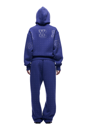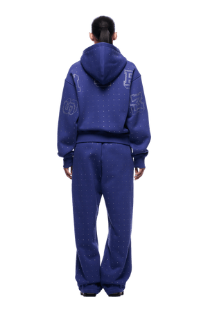 Strass-Buchstaben-Reißverschluss-Hoodie blau